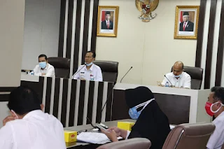 PRABUMULIH, MERDEKASUMSEL.COM -- Pemkot Prabumulih langsung menggelar Rapat Koordinasi Terkait Penanganan Covid-19 di Wilayah Kota Prabumulih yang di pimpin Sekretaris Daerah Kota Prabumulih Elman, ST, MM didampingi Asisten l Pemerintah Kota Prabumulih Drs. Aris Priadi, M.Si, Asisten III Kota Prabumulih H. M Rasyid, S.Ag, MM ,Rabu (30/09/2020).